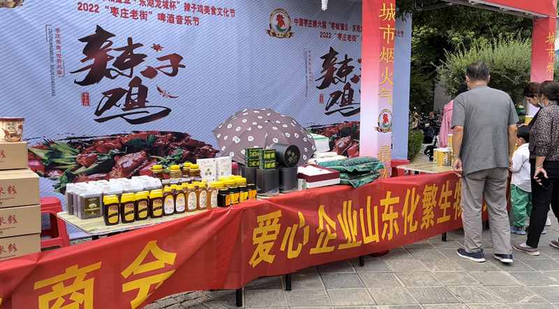 此次盛會(huì),棗莊市女企業(yè)家商會(huì)受邀并組織20余名會(huì)員參加。在商會(huì)會(huì)長(zhǎng)盧春穎的帶領(lǐng)下,商會(huì)會(huì)員企業(yè)山東化繁生物科技有限公司、山東鼎養(yǎng)食品有限公司、棗莊暹羅印象泰國(guó)直營(yíng)店三家企業(yè)現(xiàn)場(chǎng)布置展位參展,充分展示了會(huì)員企業(yè)優(yōu)秀的企業(yè)文化和豐富的特色產(chǎn)品。同時(shí)以盧會(huì)長(zhǎng)為代表的還參加了百姓炒雞表演,展現(xiàn)了精湛的廚藝,商會(huì)副會(huì)長(zhǎng)張?jiān)聠蹋ㄉ介茫┦艽髸?huì)邀請(qǐng)參加開幕式并激情演唱自己的原唱歌曲。