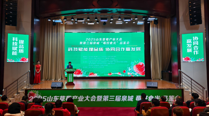 2025年1月10日至11日,由山東農(nóng)學(xué)會(huì)草莓專業(yè)委員會(huì)、山東廣播電視臺(tái)農(nóng)科頻道、濟(jì)南市農(nóng)業(yè)技術(shù)推廣服務(wù)中心共同主辦的2025年山東草莓產(chǎn)業(yè)大會(huì)暨第三屆中國•泉城“莓好食光”品鑒會(huì)在濟(jì)南召開。本次大會(huì)以“科技賦能提品質(zhì) 協(xié)同合作贏發(fā)展”為主題,旨在搭建草莓生產(chǎn)全產(chǎn)業(yè)鏈的交流與交易平臺(tái),探討草莓產(chǎn)業(yè)前沿品種、技術(shù)及市場發(fā)展趨勢。山東省農(nóng)業(yè)農(nóng)村廳黨組成員、副廳長楊武杰、濟(jì)南市農(nóng)業(yè)農(nóng)村局黨組書記、局長孟帥、山東農(nóng)學(xué)會(huì)秘書長張希軍等出席了會(huì)議。來自全國各地的草莓專業(yè)合作社、種植基地、采購企業(yè)、農(nóng)資及設(shè)施企業(yè)負(fù)責(zé)人等300余人參加了此次盛會(huì)。