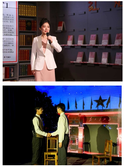 教務(wù)處教學(xué)督導(dǎo)評價(jià)中心主任葉秀利以“不拘一格地選拔人才”為題,分享了《習(xí)近平在正定》的讀書感悟,從“人才九條”的求賢若渴,到夜訪武寶信的真誠挽留,學(xué)生們沉浸式的情景演繹,讓我們深切感受到青年習(xí)近平在正定大地上的擔(dān)當(dāng)與智慧。