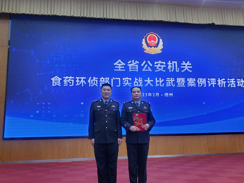 2月15日,山東省公安廳舉辦的2022年全省公安機(jī)關(guān)食藥環(huán)偵部門實(shí)戰(zhàn)大比武暨案例評(píng)析活動(dòng)中,棗莊高新區(qū)公安分局張范派出所三級(jí)警長(zhǎng)孫寶以分局破獲的“1.28銷售有毒有害食品案”作為精品案件,代表?xiàng)椙f市公安局參加了此次食藥環(huán)領(lǐng)域案例比武活動(dòng),經(jīng)過激烈角逐,在全省22名參賽選手中脫穎而出,榮獲一等獎(jiǎng)!