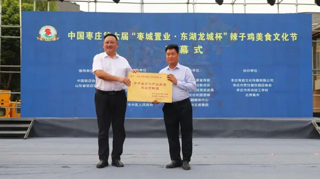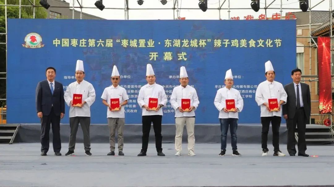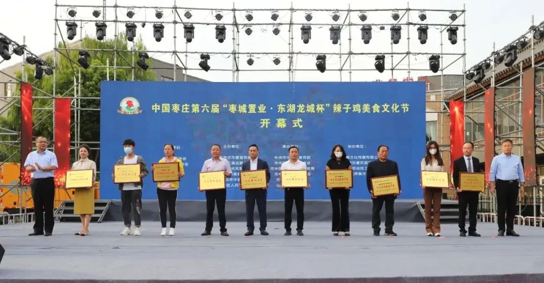 開幕式上,中國飯店協(xié)會(huì)副會(huì)長、中國飯店協(xié)會(huì)名廚委員會(huì)主席石萬榮發(fā)來了祝賀視頻。企業(yè)家代表山東棗城置業(yè)有限公司董事長殷允夷致賀詞。與會(huì)領(lǐng)導(dǎo)分別為“全雞宴”美食賽獲獎(jiǎng)團(tuán)隊(duì)、首屆“慢品市中”美食評選獲獎(jiǎng)單位、市中區(qū)文化產(chǎn)業(yè)發(fā)展突出貢獻(xiàn)獎(jiǎng)獲獎(jiǎng)單位頒獎(jiǎng),并共同啟動(dòng)第六屆辣子雞美食文化節(jié)。